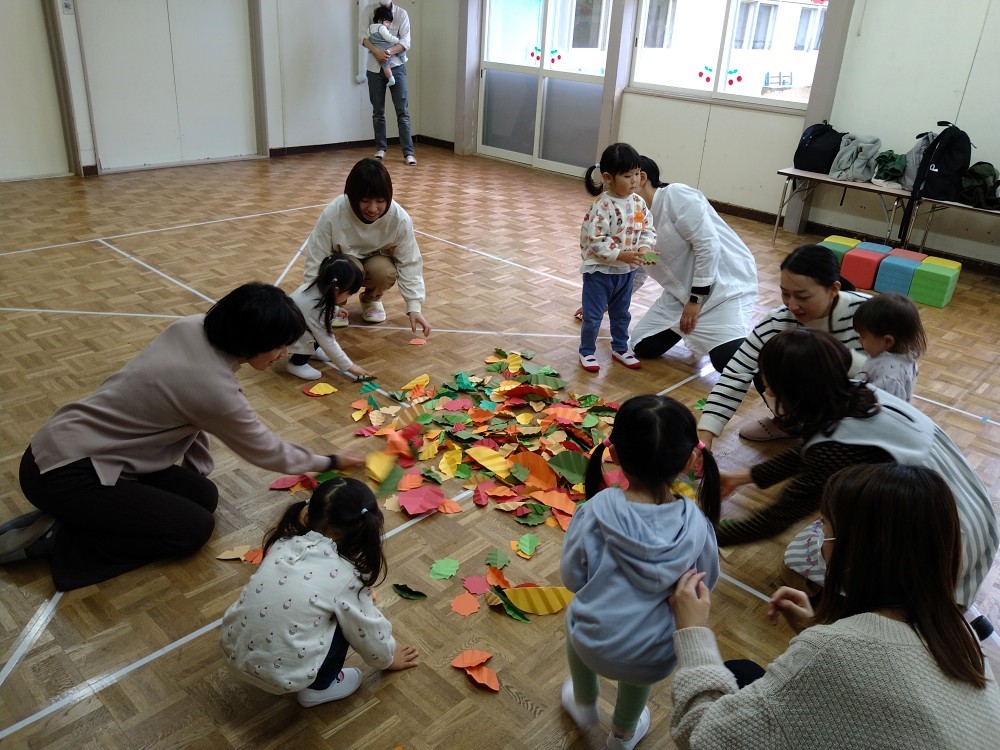 みんな落ち葉に夢中です♬